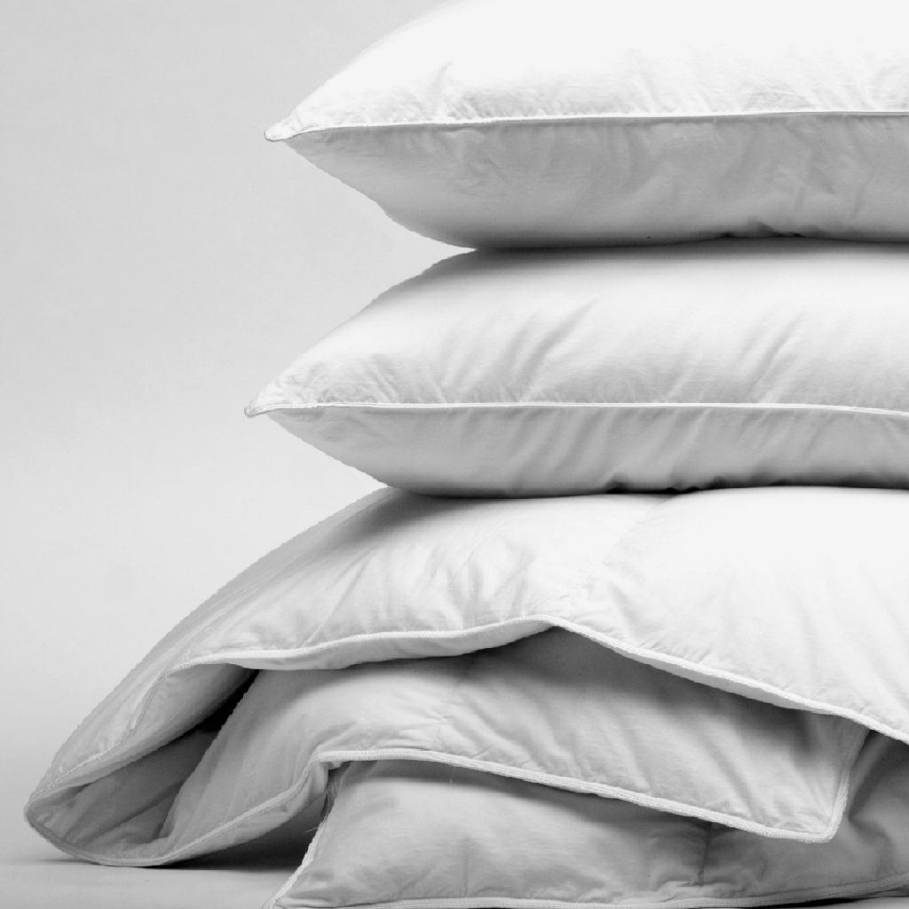Fill your dreams with this airy selection of hypoallergenic white goose down-feather pillows and duvets.